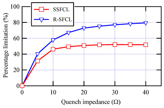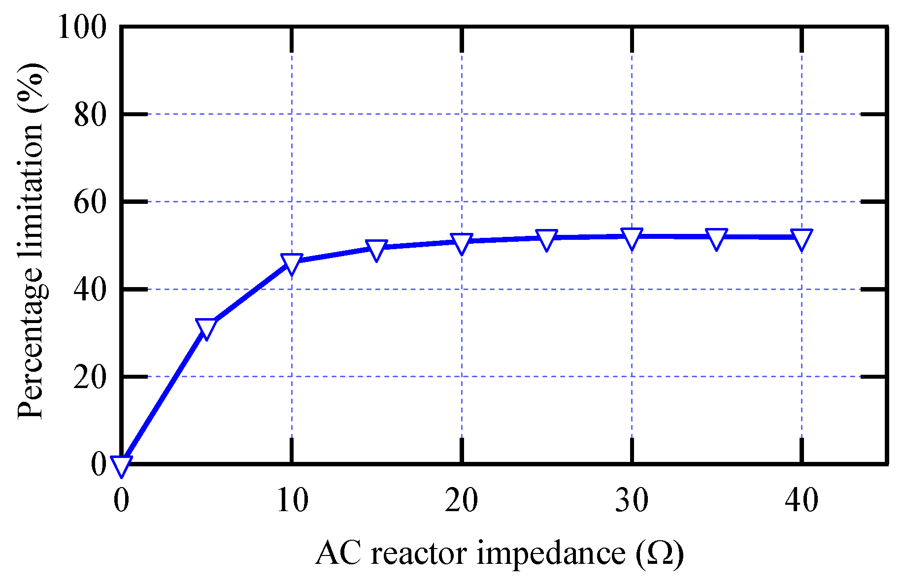 Effect of AC reactor impedance on fault current limitation percentage in the proposed SSFCL design.
