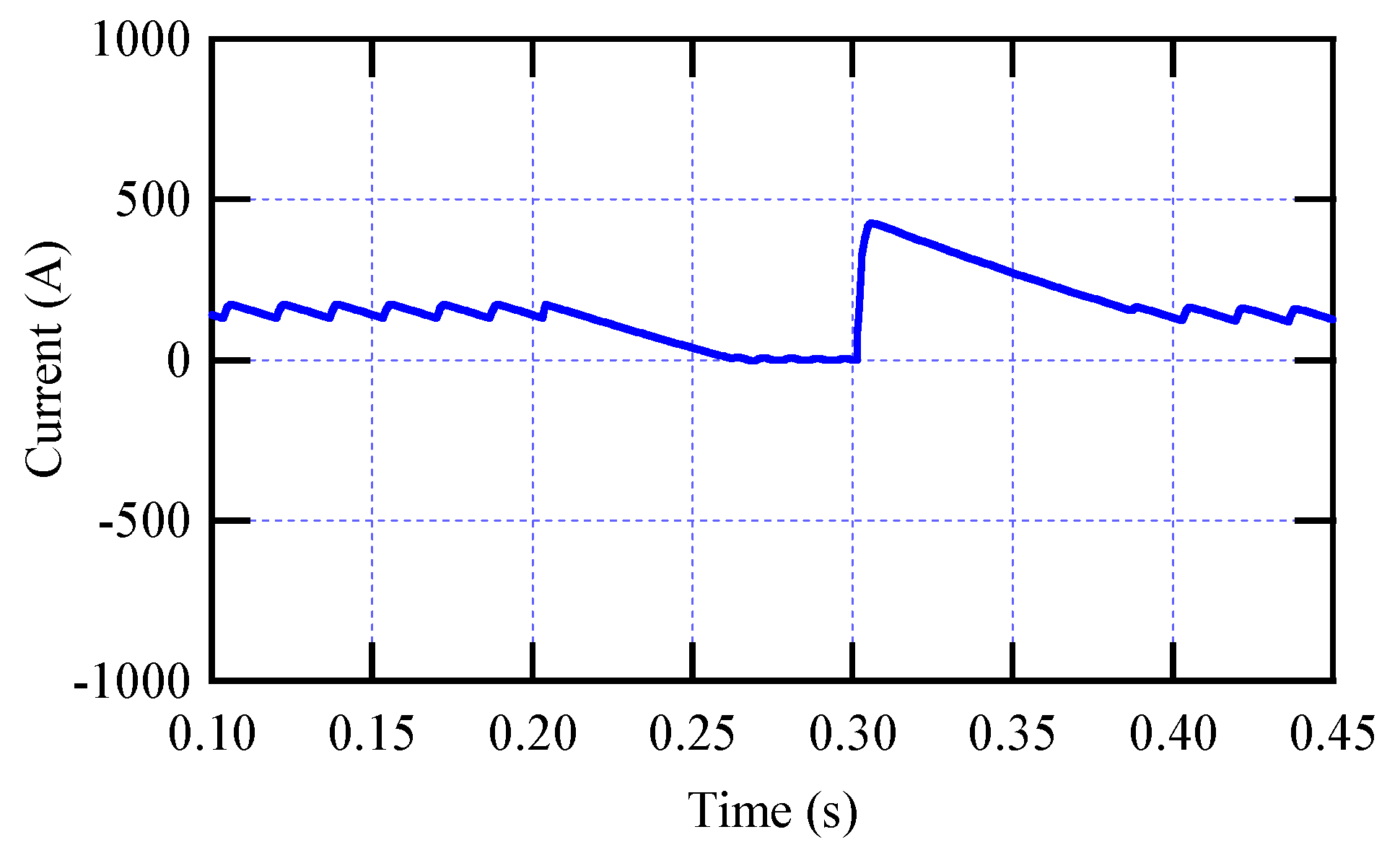 34], confirming that the proposed SSFCL topology meets the power quality requirements. Additionally, under normal load conditions, the DC reactor L1 behaves as a near-short circuit due to the nearly constant