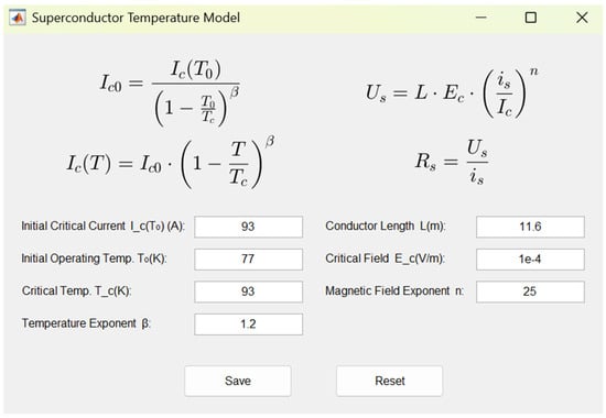 Moreover, the SFCL simulation model established in this paper has excellent adaptability in various scenarios. If the user has his own more accurate or more suitable formulas and parameter data for the targeted application scenarios, then he can directly modify and adjust the formulas and parameters in the GUI shown in Figure 5, Figure 6, Figure 7, Figure 8, Figure 9 and Figure 10 and thereby conduct simulation analysis of the SFCL characteristics.