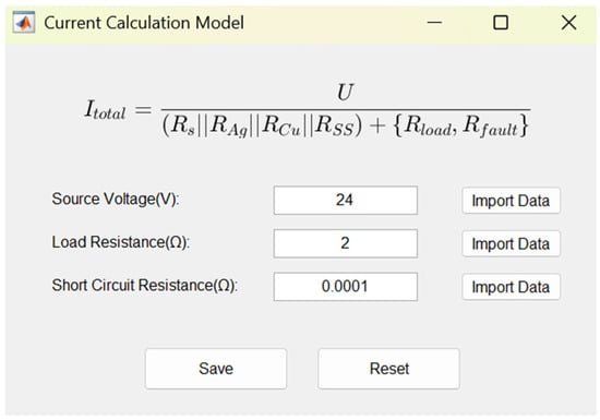 Input parameter interface of the current calculation model.