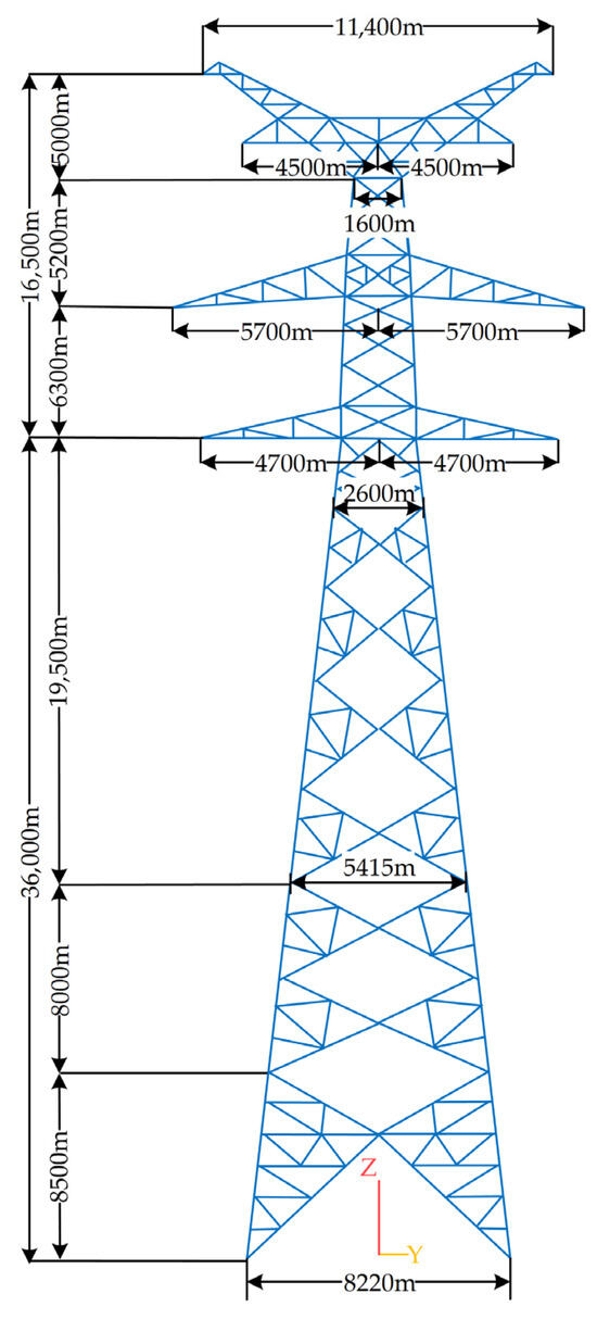 Finite Element Model of a 220 kV Horn-Shaped Dry-Type Transmission Tower.
