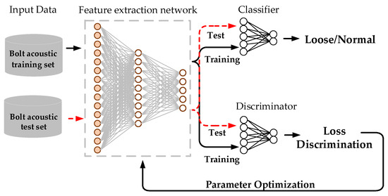 This paper presents a novel acoustic detection methodology for bolt loosening in transmission towers, combining VMD-based feature extraction with an adversarial MLP framework to improve robustness against structural and environmental variability. Experimental results demonstrate the effectiveness of this approach. The proposed portable device further supports practical deployment, enhancing maintenance efficiency and grid safety. This study has two main limitations. First, the acoustic dataset is limited in scale due to challenges in field data collection, including safety restrictions, environmental variability, and the high cost of manual annotation. Second, the current method focuses on single-bolt loosening, whereas real-world structures often involve complex bolt groups where signal interference and multi-bolt coupling pose significant challenges. The experimental scope is also confined to heights of 0–20 m. Future work will focus on expanding the dataset through acoustic-specific augmentation and synthetic data generation from finite element models, alongside transfer learning from broader mechanical fault corpora. Research will also extend to group-bolt scenarios and taller tower configurations, aiming to improve model generalization and practical applicability across diverse structural and environmental conditions.