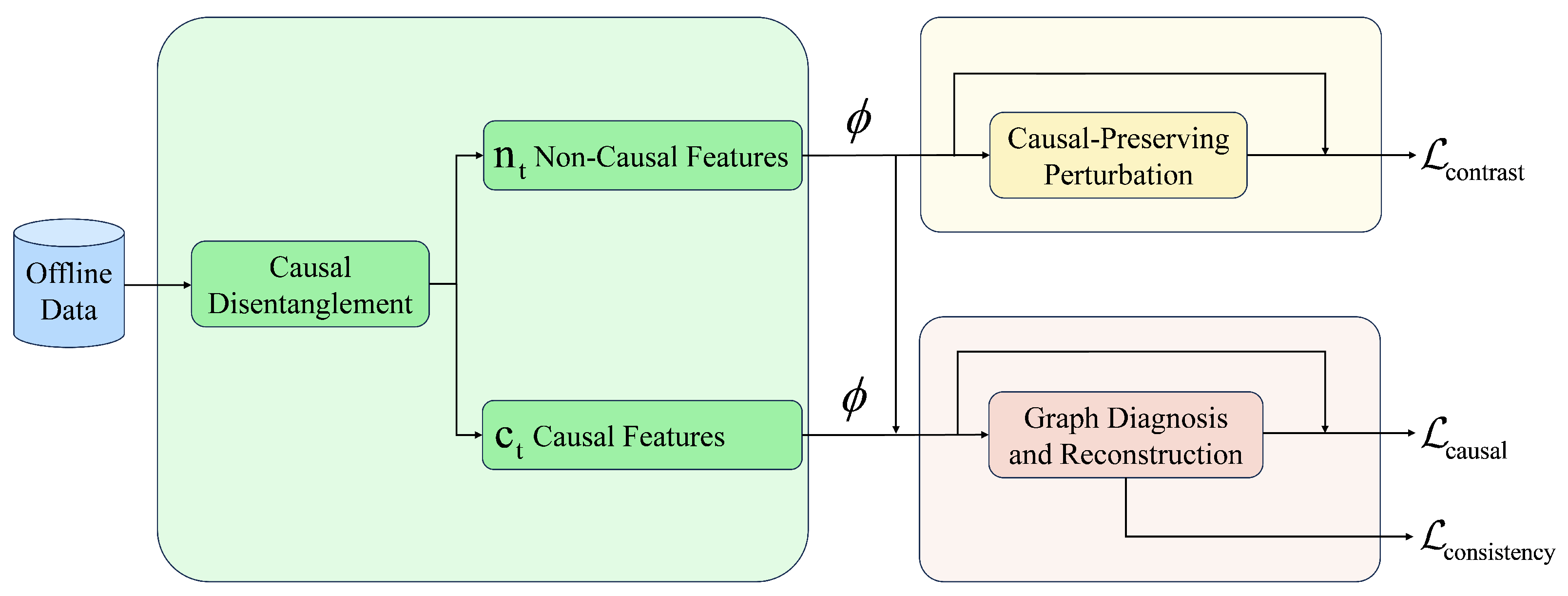 Chicago/Turabian StyleMa, Ao, Peng Li, and Xiaolong Su. 2025. "Robust Offline Reinforcement Learning Through Causal Feature Disentanglement" Electronics 14, no. 20: 4064. https://doi.org/10.3390/electronics14204064
