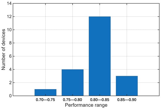 Figure 2 shows the transmission performance distribution of all devices under the proposed delay minimization algorithm. The results confirm that the algorithm ensures all devices meet the minimum threshold , with over 50% achieving . This validates the algorithm’s effectiveness in reliable UAV offloading and resource allocation.