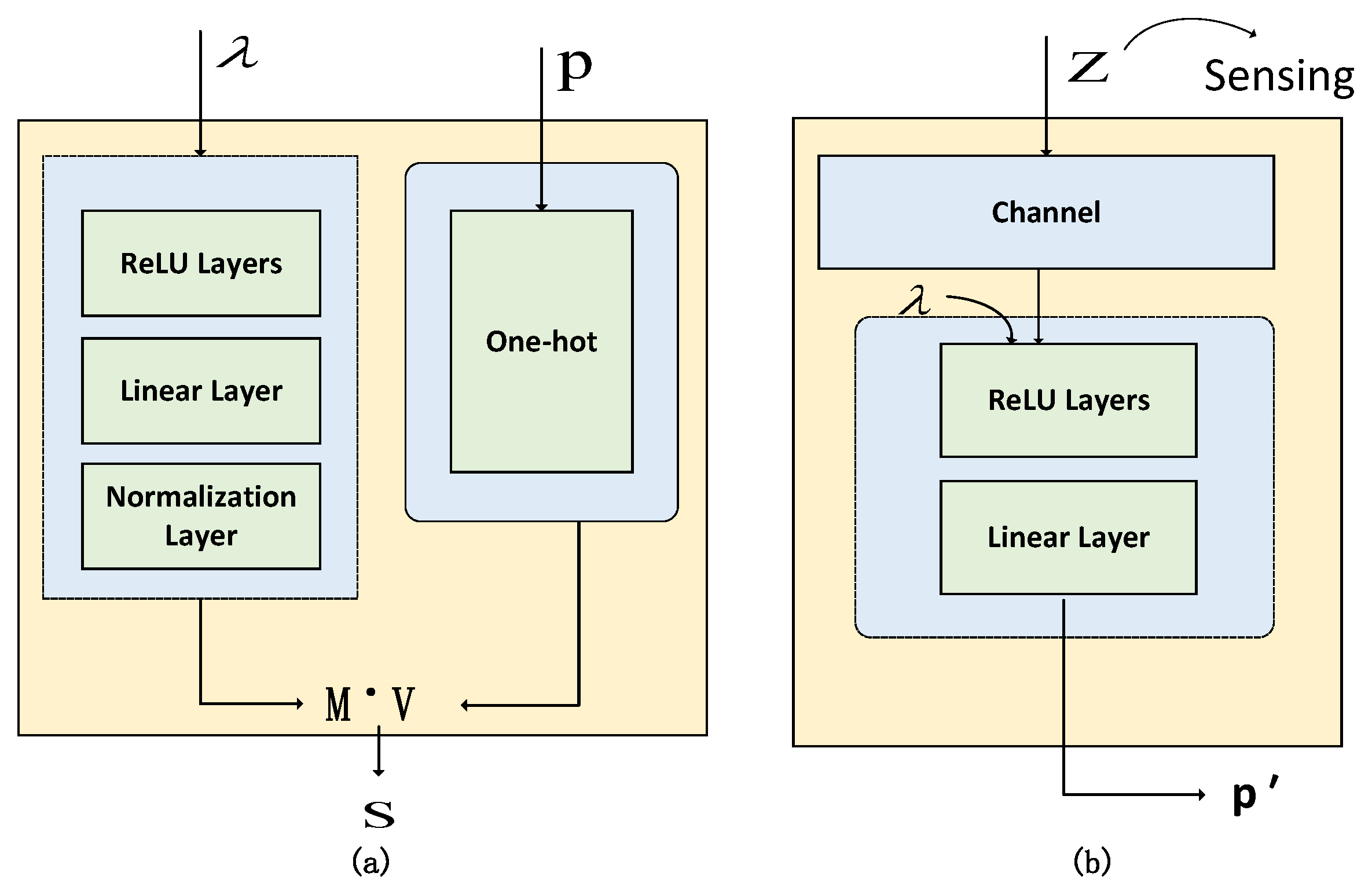 Figure 2. It comprises two core components: (1) the autoencoder mapper (AE-Mapper) for generating optimized constellation points; (2) the autoencoder demapper (AE-Demapper) for robust signal decoding. These components are jointly trained using a loss function that simultaneously accounts for communication reliability and sensing accuracy, achieving balanced optimization of ISAC performance. Detailed designs of the transmitter and receiver are provided in the following subsections.