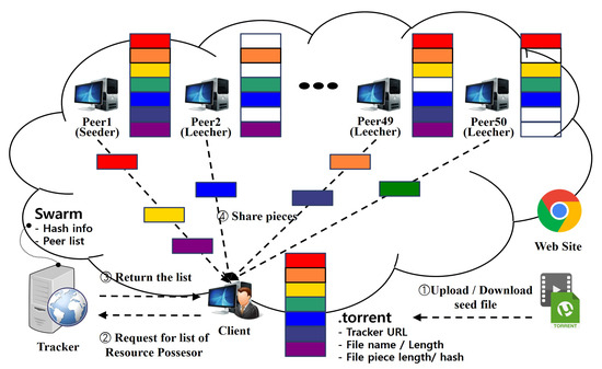BitTorrent is a distributed network used by more than two billion people worldwide. Unlike the traditional client-server model, which shares an entire file through a centralized server, each peer in BitTorrent can hold part or all of a file and share fragments with other peers simultaneously. This decentralized structure enables the transfer of large files much faster than in a conventional client-server system [26].