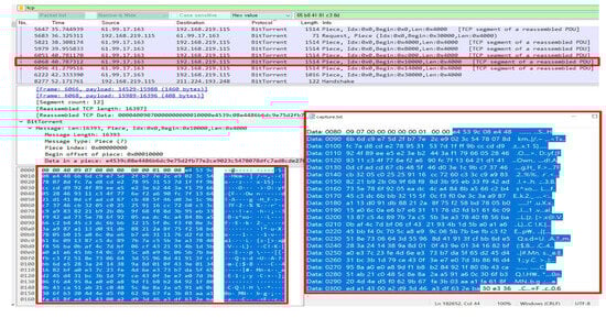 As shown in Figure 9, the normal traffic generated during the download of a standard video file and the traffic produced by the proposed model were captured using Wireshark and compared. Since no significant differences were observed between the two types of traffic, the proposed model is confirmed to operate stealthily, indistinguishable from normal BitTorrent communication.