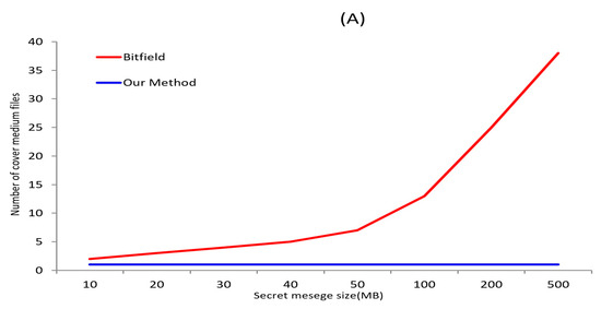 In this experiment, we conduct a comparative analysis to demonstrate that the proposed model is more efficient in securing payload capacity than existing approaches [24]. Specifically, the comparison focuses on video files of average size, calculated by averaging the sizes of the 100 most shared video files.