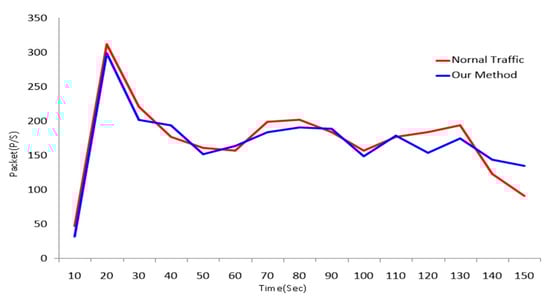 Wireshark-based comparison between normal traffic and traffic from our method.