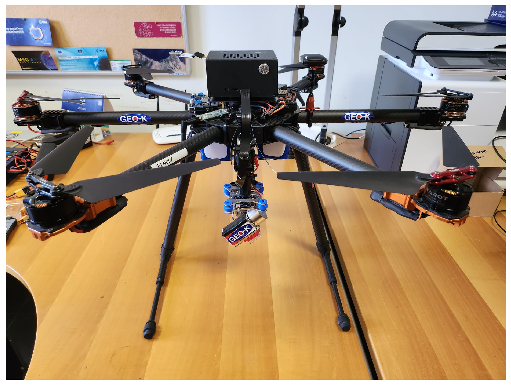 For the AgriAdapt experiment, we developed a custom UAV system featuring a hexa-rotor design with a maximum take-off weight of up to 6 kg (as shown in