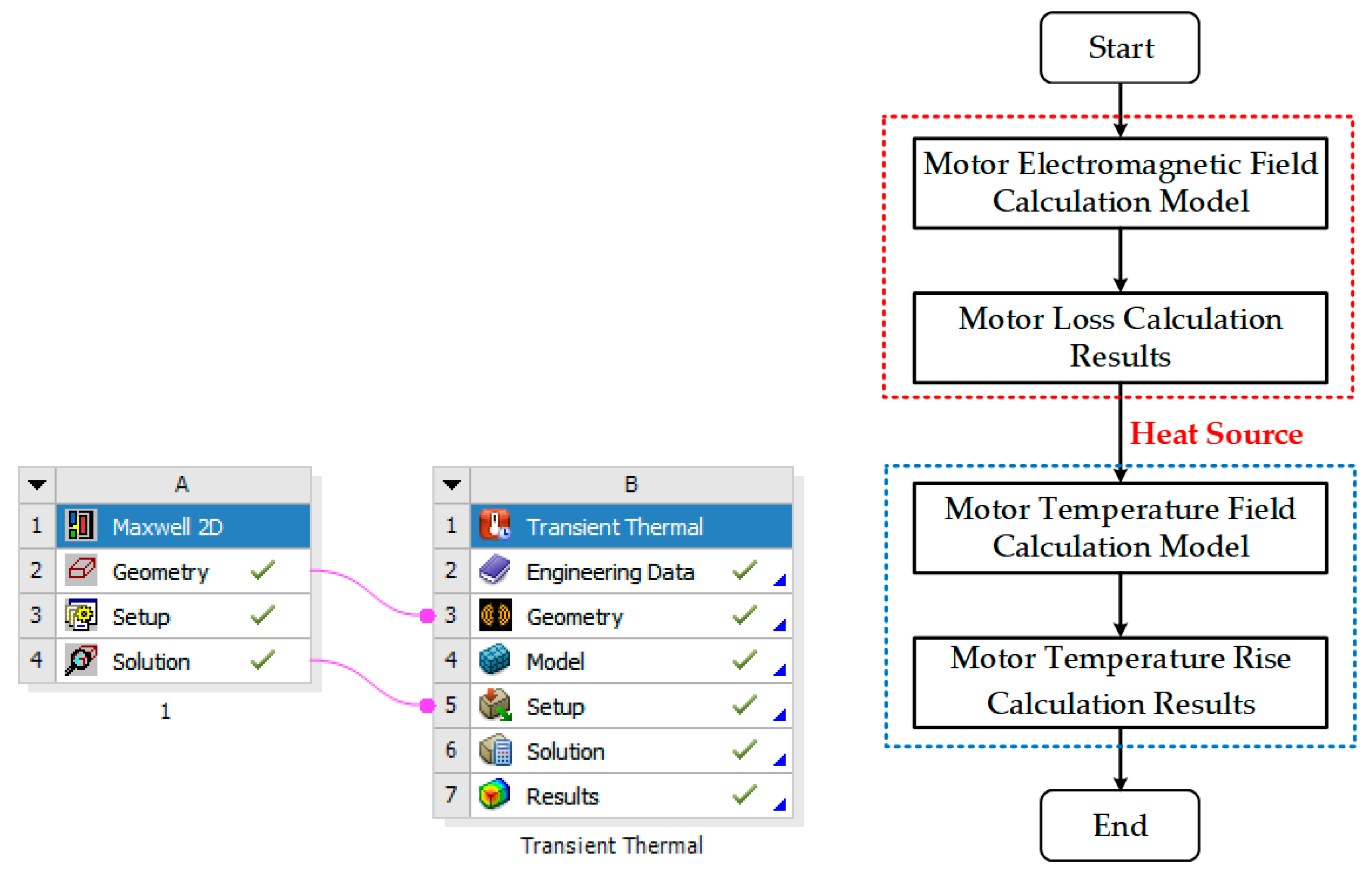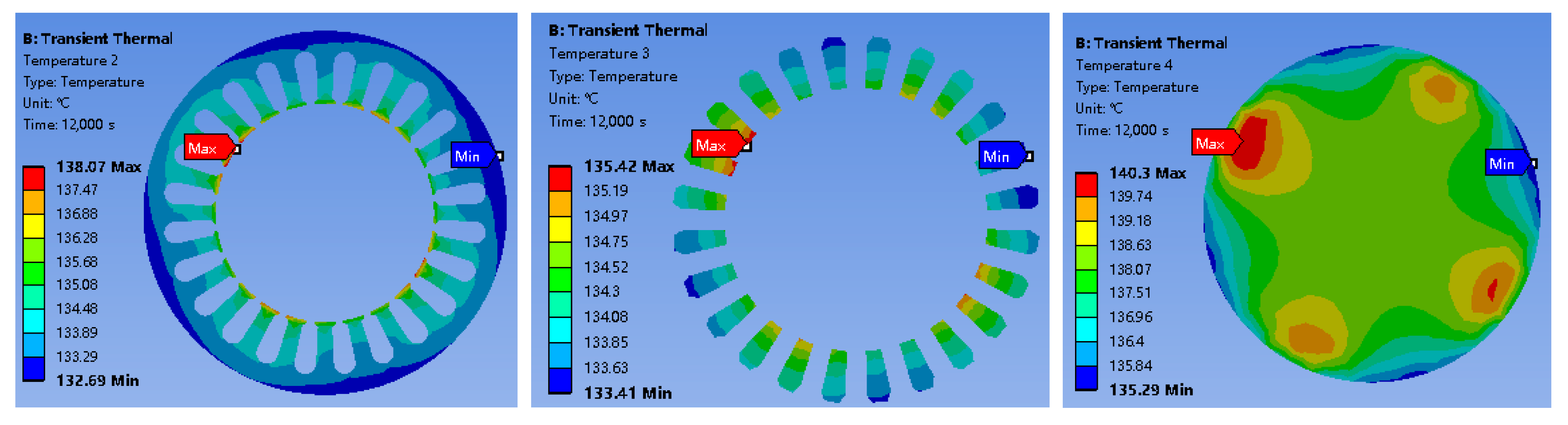 The thermal analysis was conducted using a steady-state thermal module in ANSYS Workbench 2022 R1. The accuracy of the simulation is highly dependent on the temperature-dependent thermal properties of the motor components.
