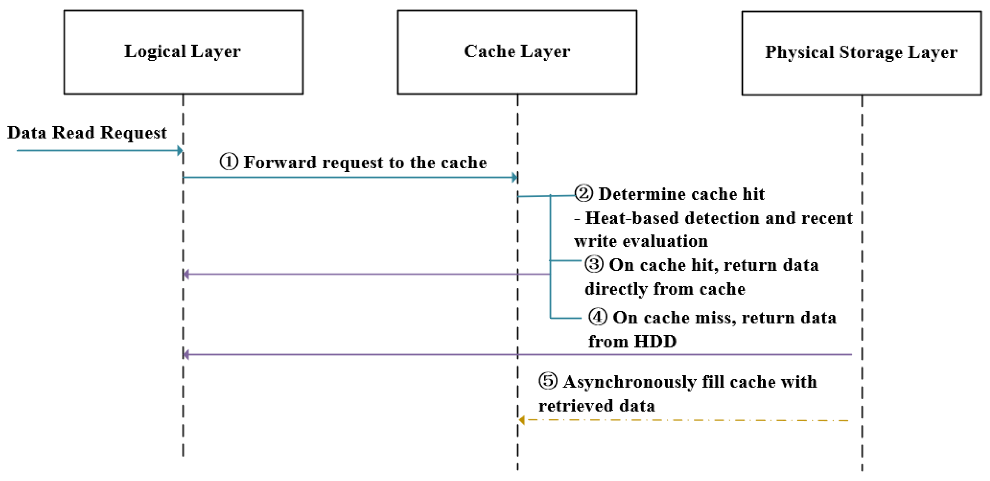 - Request Forwarding: Upon receiving a read request from the upper layer, the logical layer immediately forwards the request to the cache layer for hit detection.