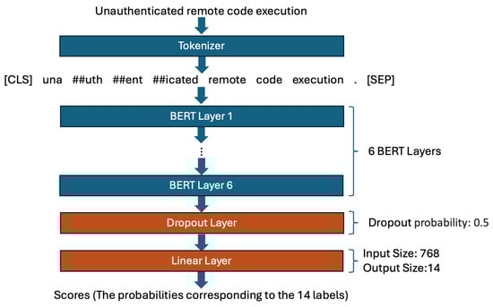 Figure 5 that two additional layers, a dropout layer and a linear layer, were employed after transformer layers, with the output layer consisting of 14 units. The dropout layer is used to mitigate the over fitting by ignoring some hidden nodes, though some information will be lost, which could potentially compromise the model’s performance. The dropout rate was set as