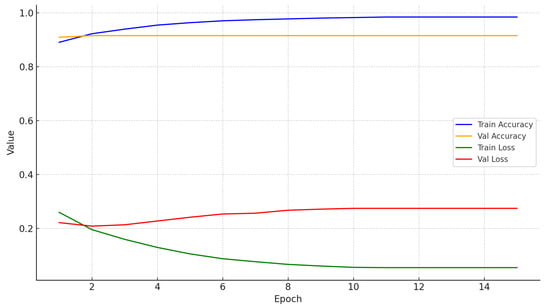 Table 3 presents the detailed performance per tactic. The model demonstrates strong precision across most tactics, particularly for persistence, privilege escalation, defense evasion, and credential access, where performance exceeded 90%. However, recall varied considerably among different tactics. The recall of command and control was only 25%, which is notably low. Many of these samples were misclassified into semantically related tactics such as credential access, persistence, defense evasion, and privilege escalation. This is likely due to class imbalance: the relatively small number of command and control samples limited the model’s ability to capture distinctive contextual patterns, causing it to confuse them with tactics of higher textual similarity.