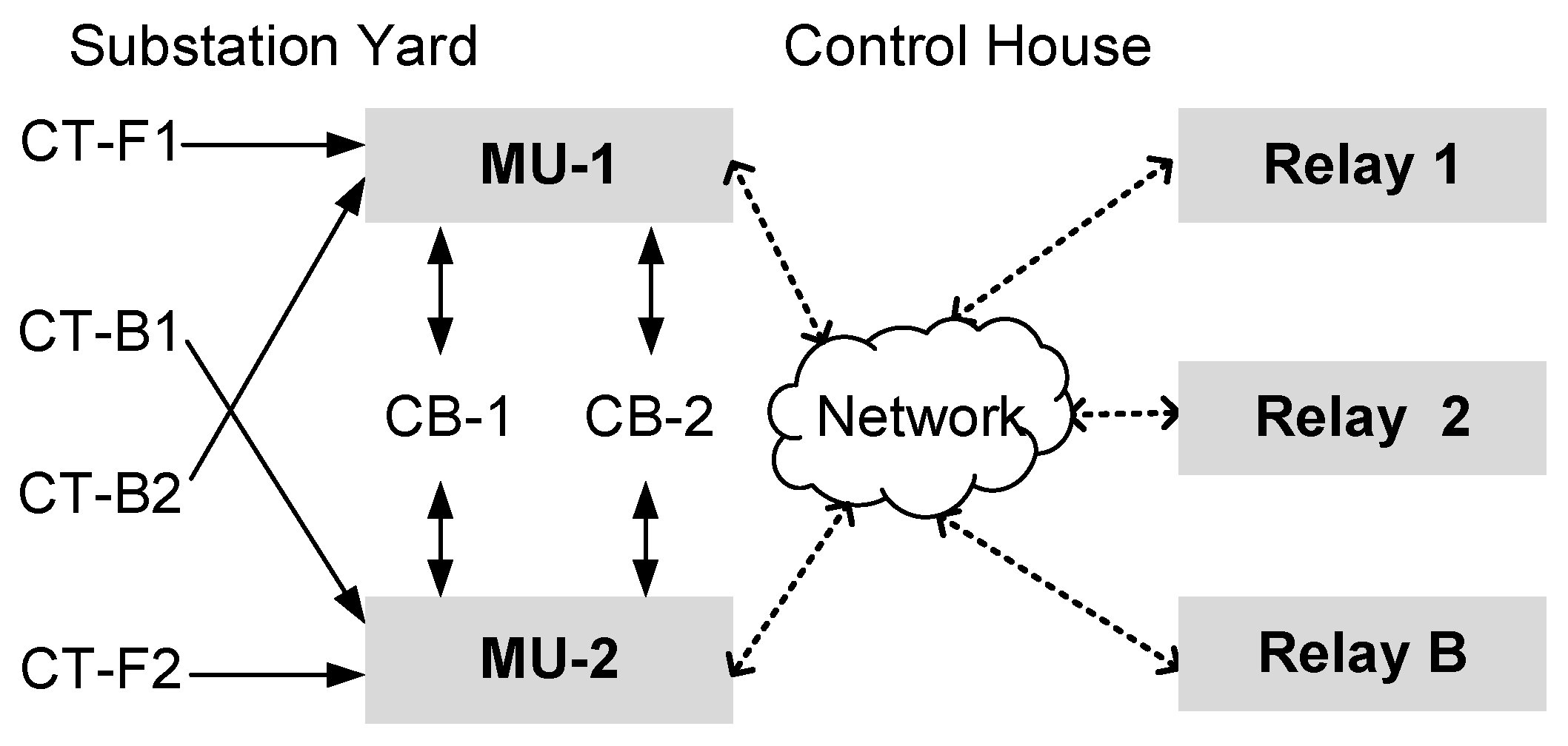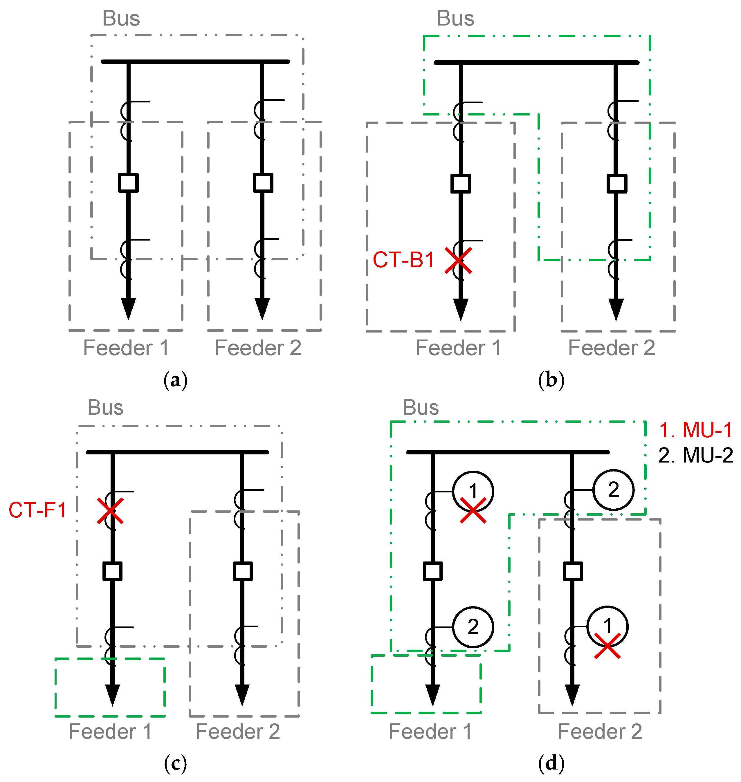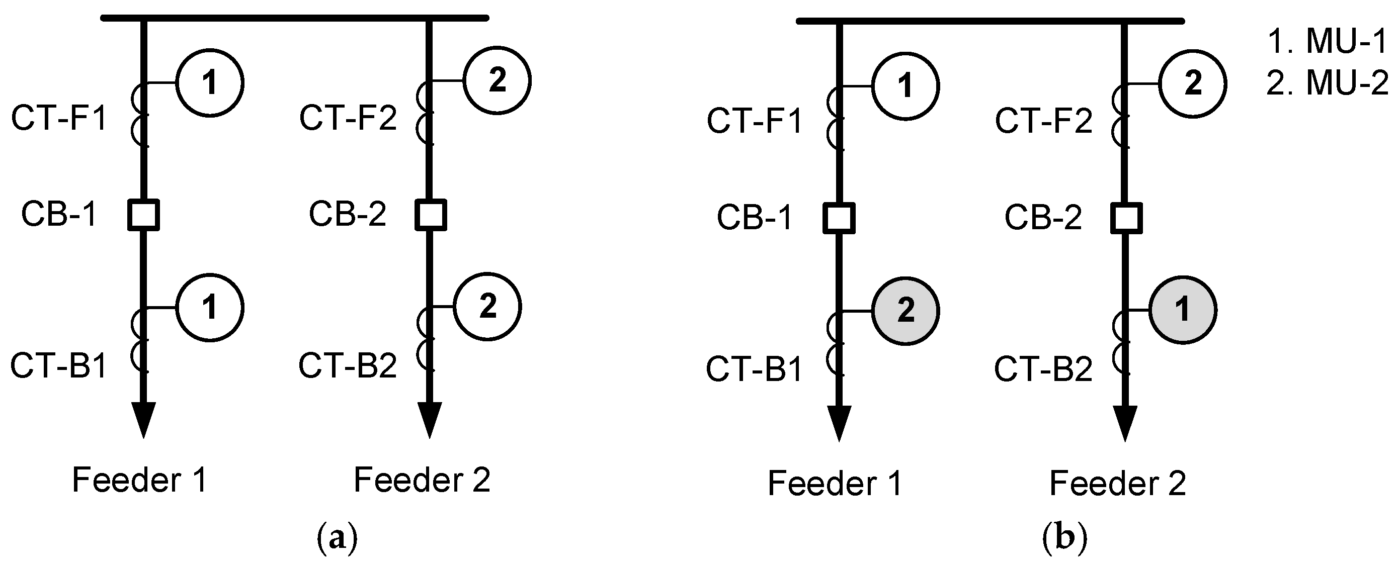 - Apostolov, A. IEC 61850-based bus protection—Principles and benefits. In Proceedings of the IEEE Power & Energy Society General Meeting, Calgary, AB, Canada, 26–30 July 2009. [Google Scholar]
