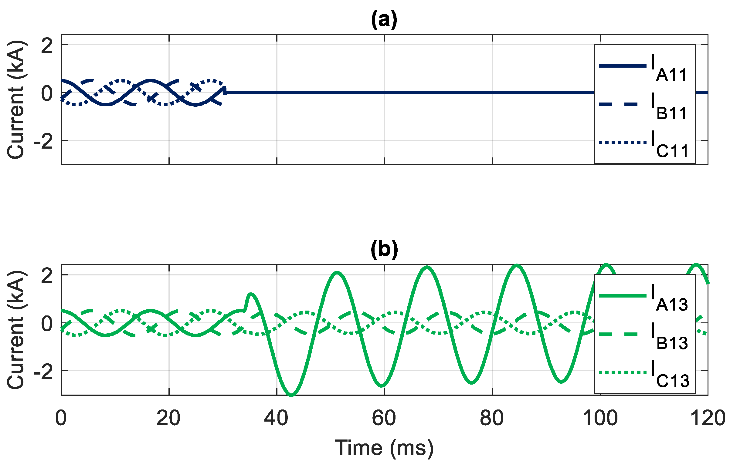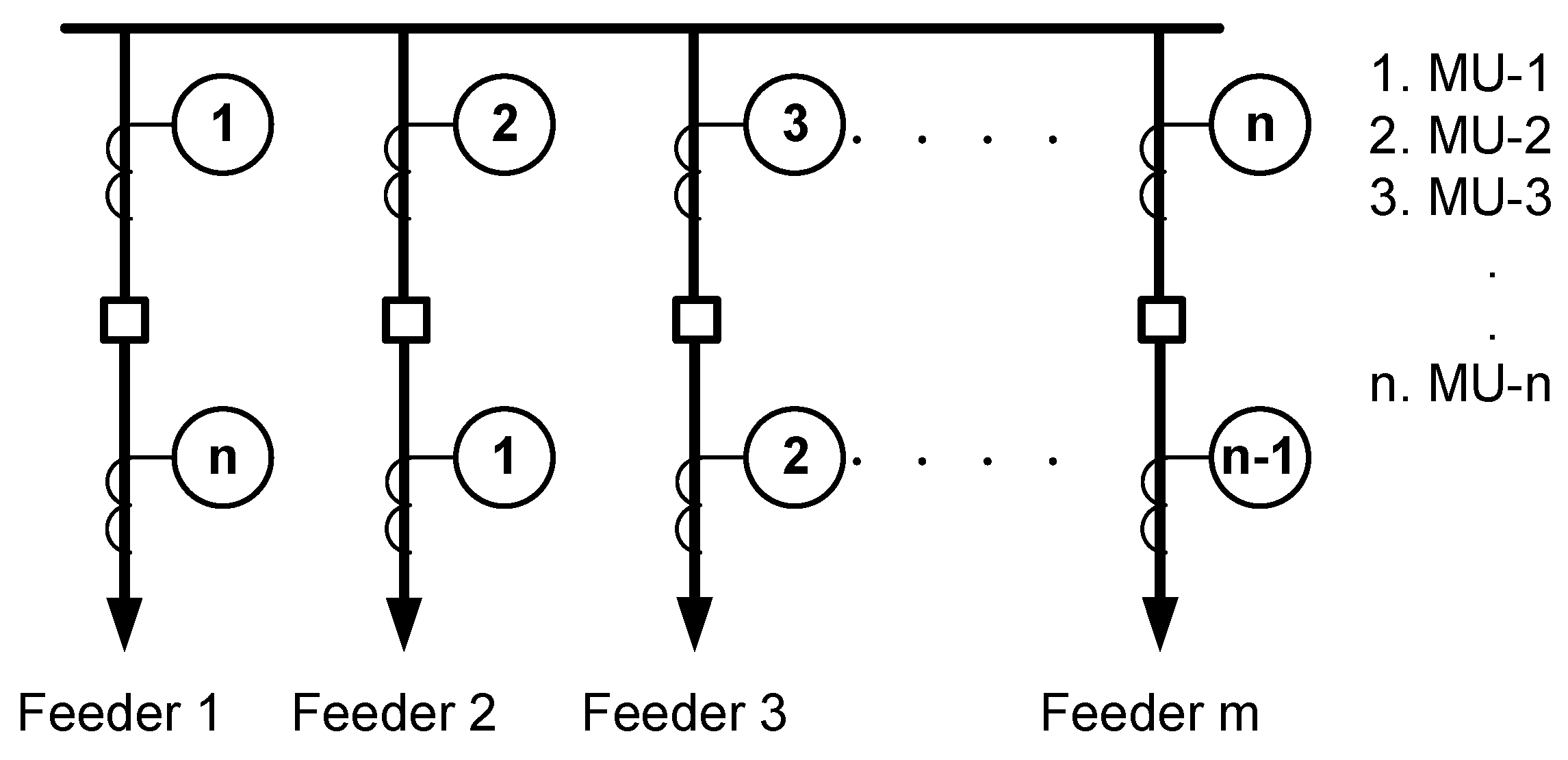 - Oens, M.; Lange, C. Improvements in Feeder Protection Providing a Primary and Backup Relay System Utilizing One Relay per Feeder. In Proceedings of the 33rd Annual Western Protective Relay Conference, Spokane, WA, USA, 17–19 October 2006. [Google Scholar]