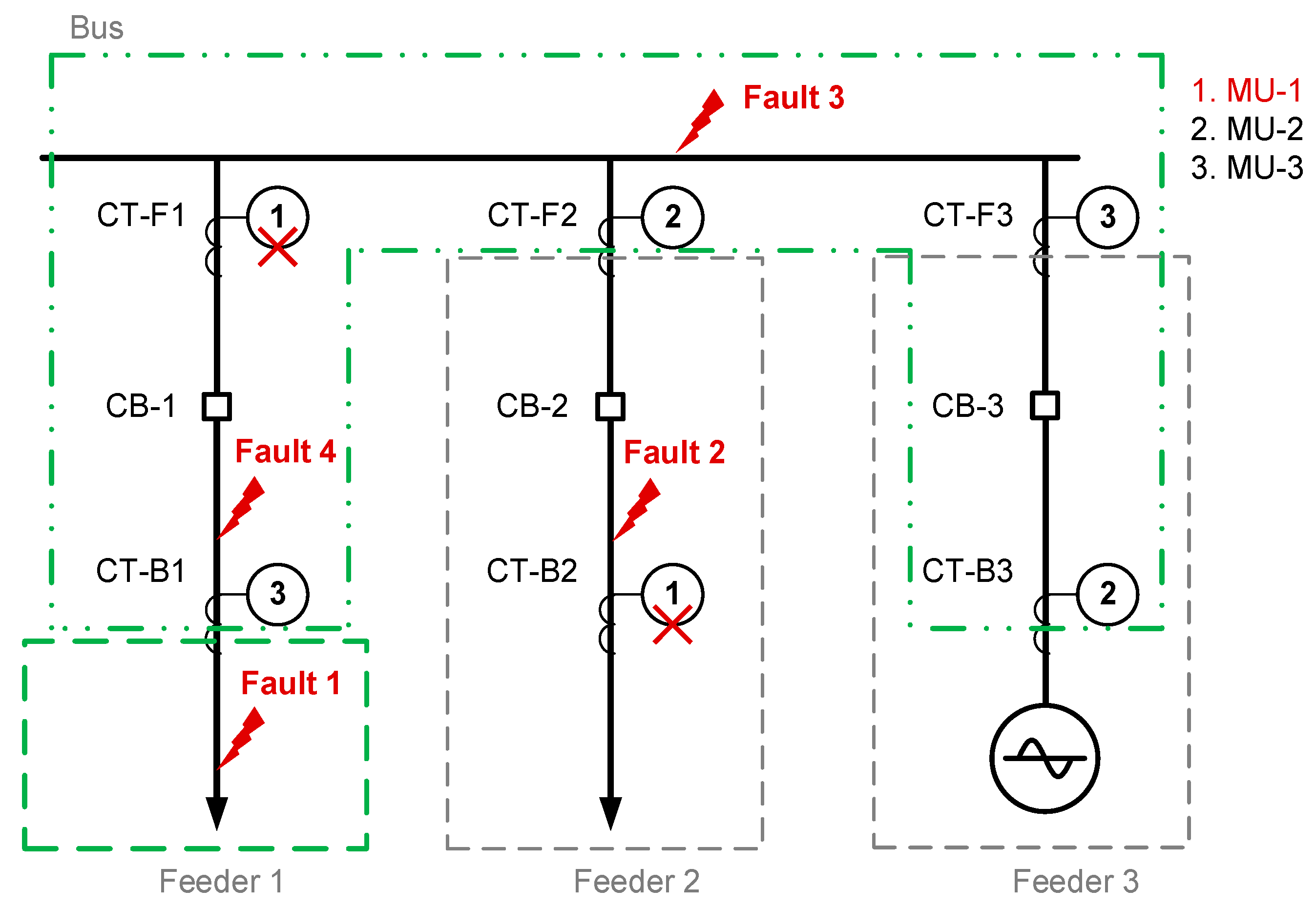| Relay-B—Feeder 1 | MU-3 (IA13) | MU-1 (IA11) |