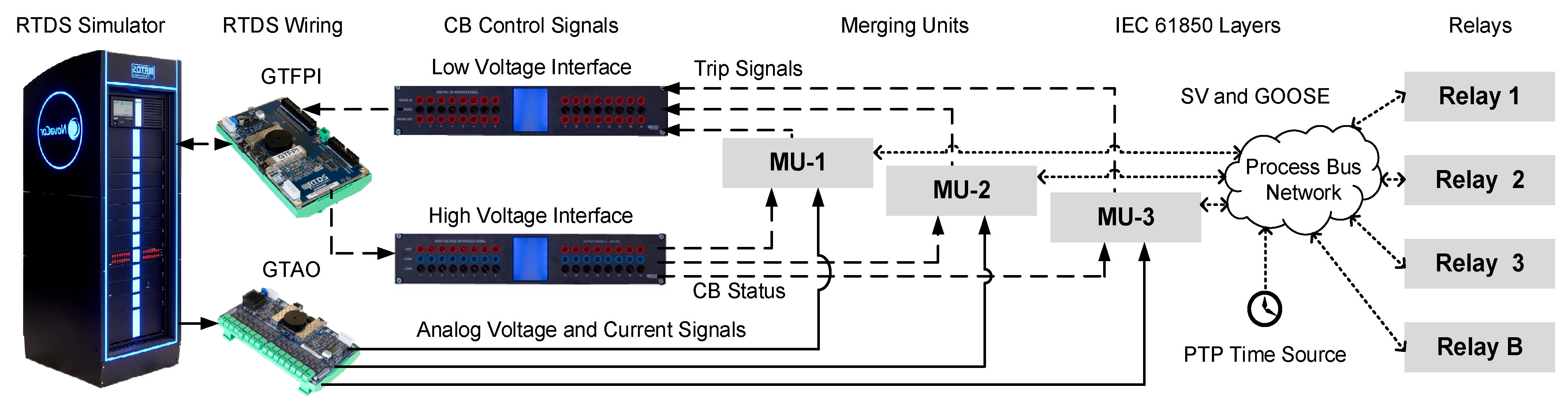 - Byerly, J.; Thakur, M.; Hostetler, J.; Burger, C.; Wenke, S. Distribution Digital Substation—Consolidated Protection and Digital Secondary Systems. In Proceedings of the Western Protective Relay Conference, Spokane, WA, USA, 9–12 October 2023. [Google Scholar]