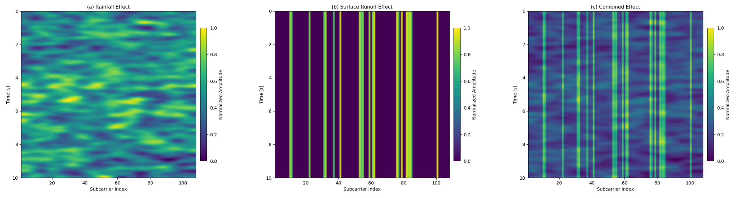 6]. The second is the severe multipath effect induced by surface water accumulation (runoff), which creates new, highly reflective surfaces. This drastically alters the propagation geometry, introducing new signal paths and resulting in sharp, frequency-selective fading across different subcarriers [