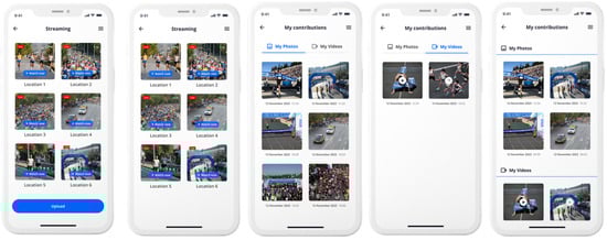 In addition to consumption, the application empowered users to contribute actively as content creators. Through an intuitive capture interface (see Figure 2), users could record short videos, shoot photos, or add contextual comments. Each submission was automatically tagged with geolocation and timestamp information, ensuring semantic alignment with the ongoing race. A guided workflow, covering location selection, capture, and annotation, made the contribution process straightforward, even for non-technical users.