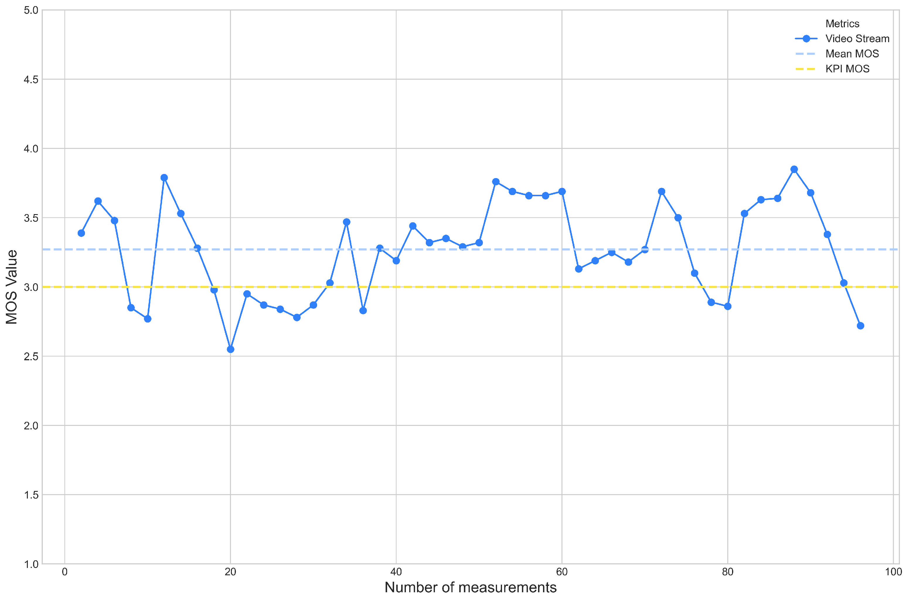 - Predicted quality value (MOS value), providing an estimate of perceived quality for the analyzed video interval.