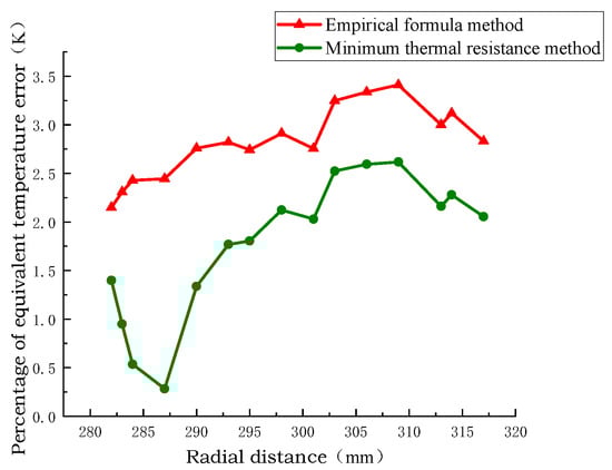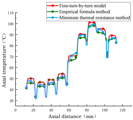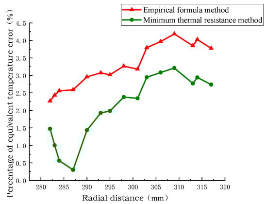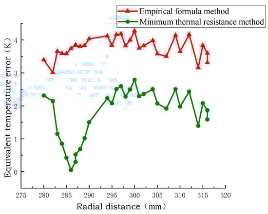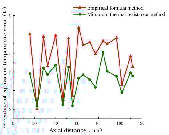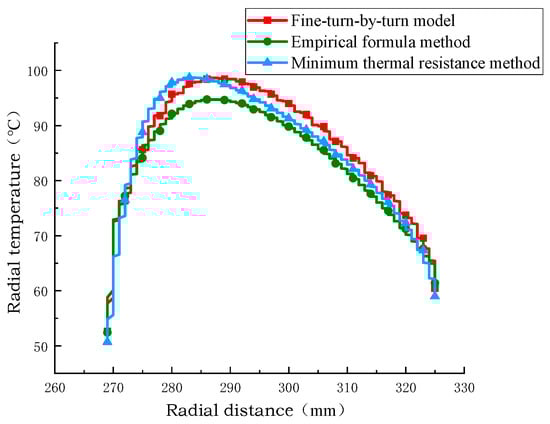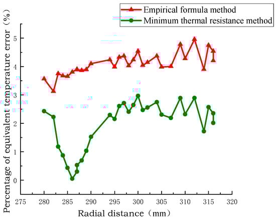 In the accurate calculation of the temperature rise and hot spots of transformer windings, considering the inter-turn insulation will lead to a sharp increase in the workload of detailed modeling and a large number of mesh refinements. To address this issue, this paper proposes a calculation method for the equivalent thermal conductivity based on the minimum thermal resistance principle. This method can accurately calculate the equivalent thermal conductivities in the axial and radial directions of the windings. By using the disk windings model under the equivalent thermal conductivity, a temperature field analysis is performed on the actual windings with inter-turn insulation. To validate the method, models considering inter-turn insulation and equivalent models are constructed, and detailed analyses are performed using the empirical formula method and the equivalent method based on the minimum thermal resistance principle, respectively. By comparing the simulation results of the equivalent model and the model considering inter-turn insulation, it is found that the equivalent method based on the minimum thermal resistance principle not only significantly reduces the number of mesh elements but also achieves significantly improved accuracy in the temperature field analysis of the turn-divided model compared to the empirical formula method. Moreover, the winding temperature rise and hot spot positions before and after the equivalence are nearly identical and closer to the experimental results, demonstrating the validity of this method. Full article