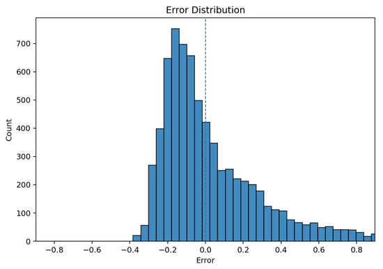 Moreover, to analyze the characteristics of prediction errors, we visualized the error distribution of the upper-triangular elements of the predicted correlation matrices, representing pairwise asset correlations. As shown in Figure 12, the error distribution is asymmetric and right-skewed, with the majority of errors concentrated around slightly negative values (approximately between –0.25 and 0.1).