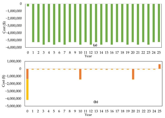 | Element | Capital Cost | Replacement Cost | Operating and Maintenance Cost | Fuel Cost |
