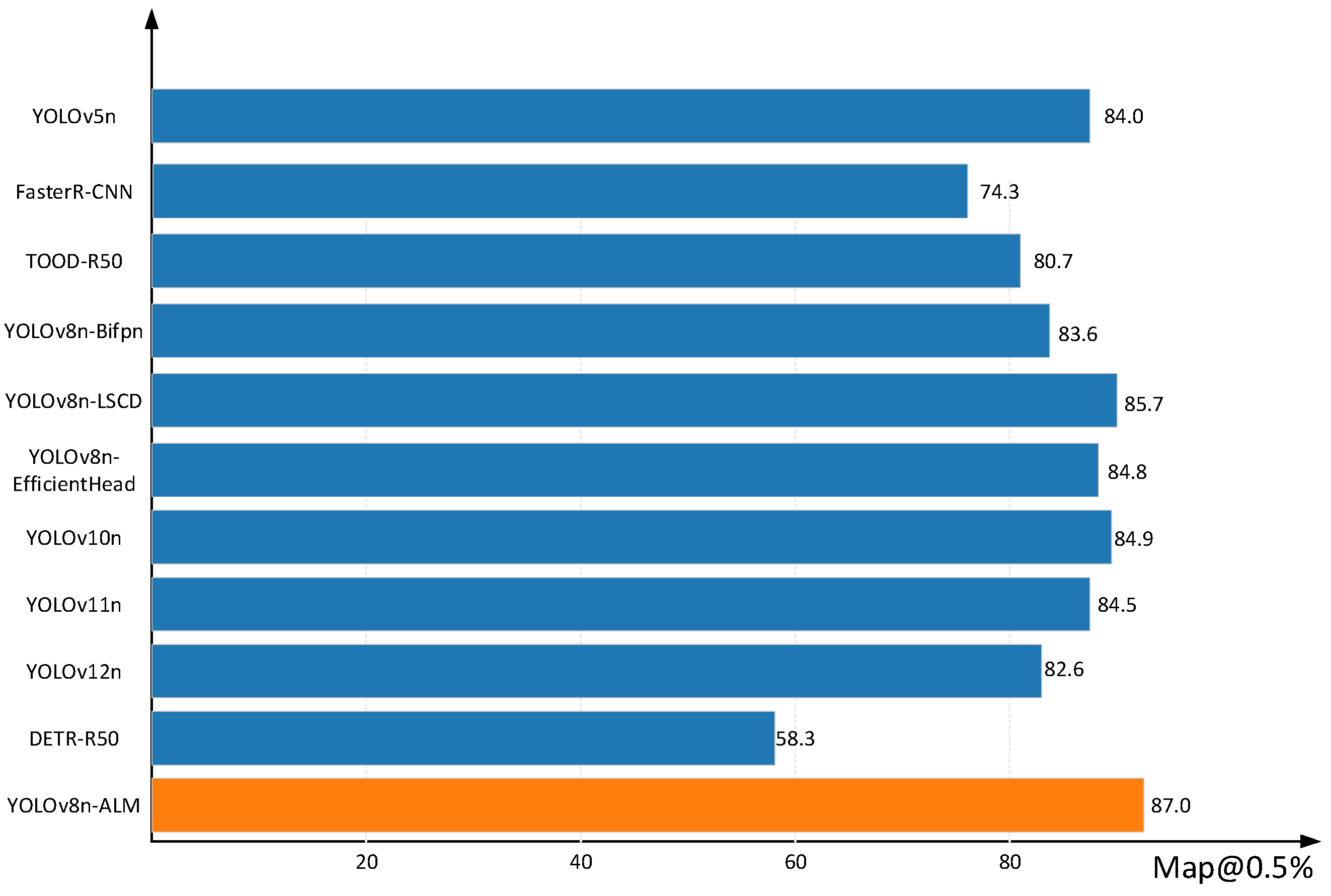 | YOLOv8n-ALM | 96.5 | 77.7 | 86.7 | 87.0 | 5.7 | 1.04 |