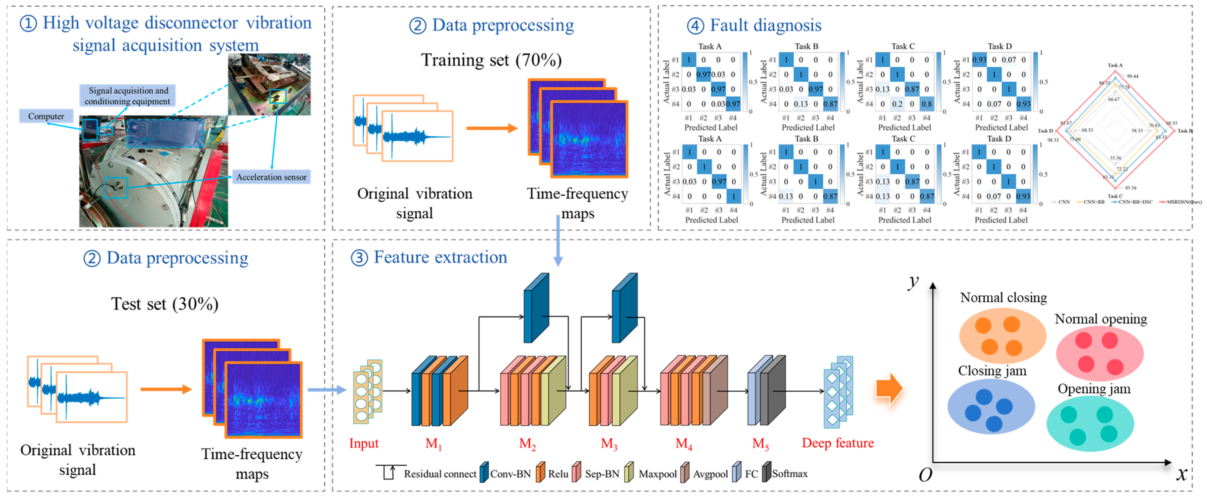 Chicago/Turabian StyleZhu, Shijian, Peilong Chen, Xin Li, Qichen Deng, Yuxiang Liao, and Jiangjun Ruan. 2025. "MSRDSN: A Novel Deep Learning Model for Fault Diagnosis of High-Voltage Disconnectors" Electronics 14, no. 21: 4151. https://doi.org/10.3390/electronics14214151