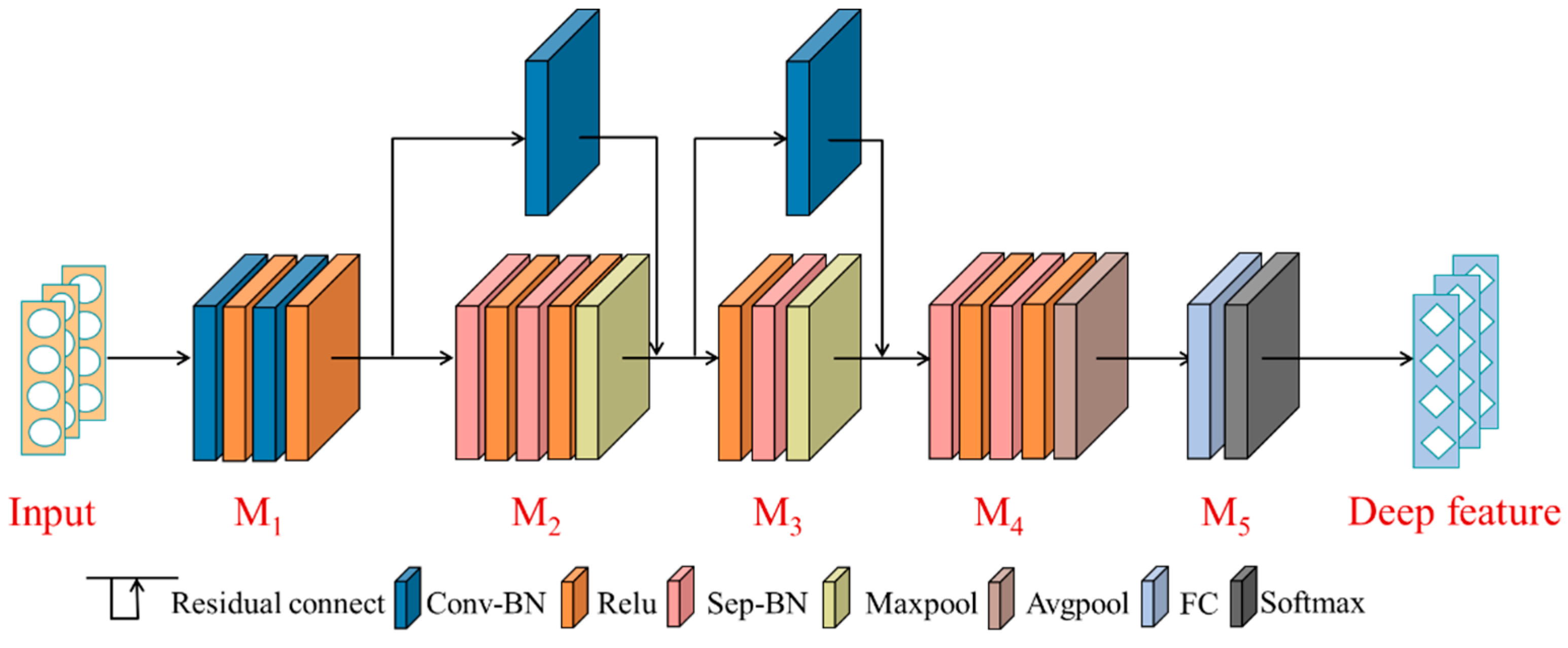 | Module 2 | (Sep-BN + Relu) × 2 Maxpool | Kernel size = 3 × 3 stride = 1 Kernel size = 3 × 3 stride = 2 |