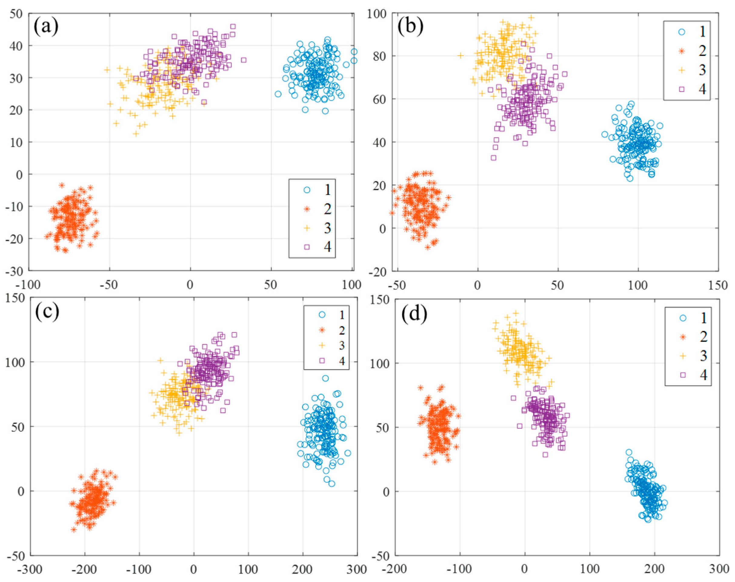 - Feature Extraction Stage: The two-dimensional time-frequency diagrams of the training set are input into the RDSN, and the parameters of each network layer are adjusted. The trained RDSN is then saved. Subsequently, the test set’s time-frequency diagrams are fed into the network, and downsampling is applied for dimensionality reduction to extract fault features from both the training and test sets. The effectiveness of feature extraction is validated using t-SNE for visualization.