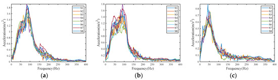 Superimposed spectrum of various sensors. (a) X-axis; (b) Y-axis; (c) Z-axis.