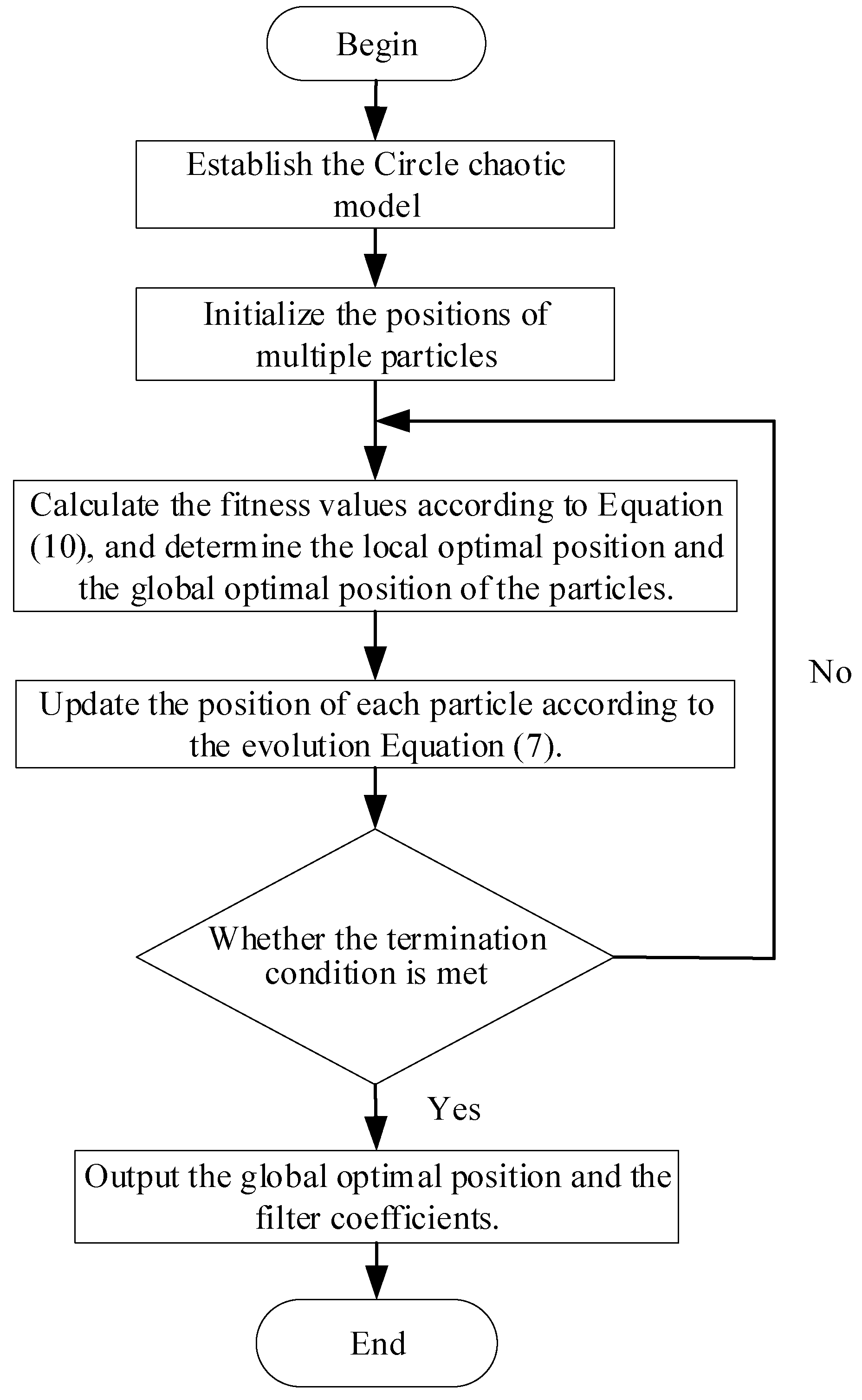 Step 5: When the number of iterations has not been reached, continue to update the particle positions according to Equation (7).