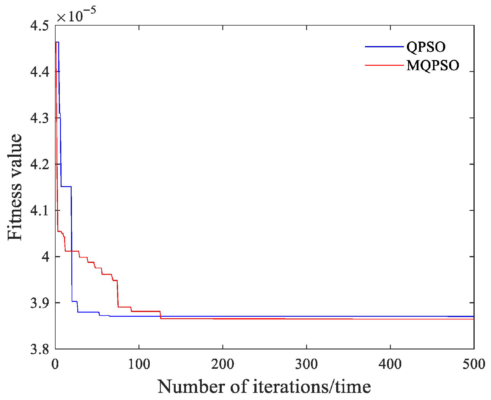 Figure 6. For the MQPSO algorithm, the number of iterations is set to 500, the number of particles is set to 50, and the order of the phase compensation filter is set to 17, which means the dimension of the particles is 17.