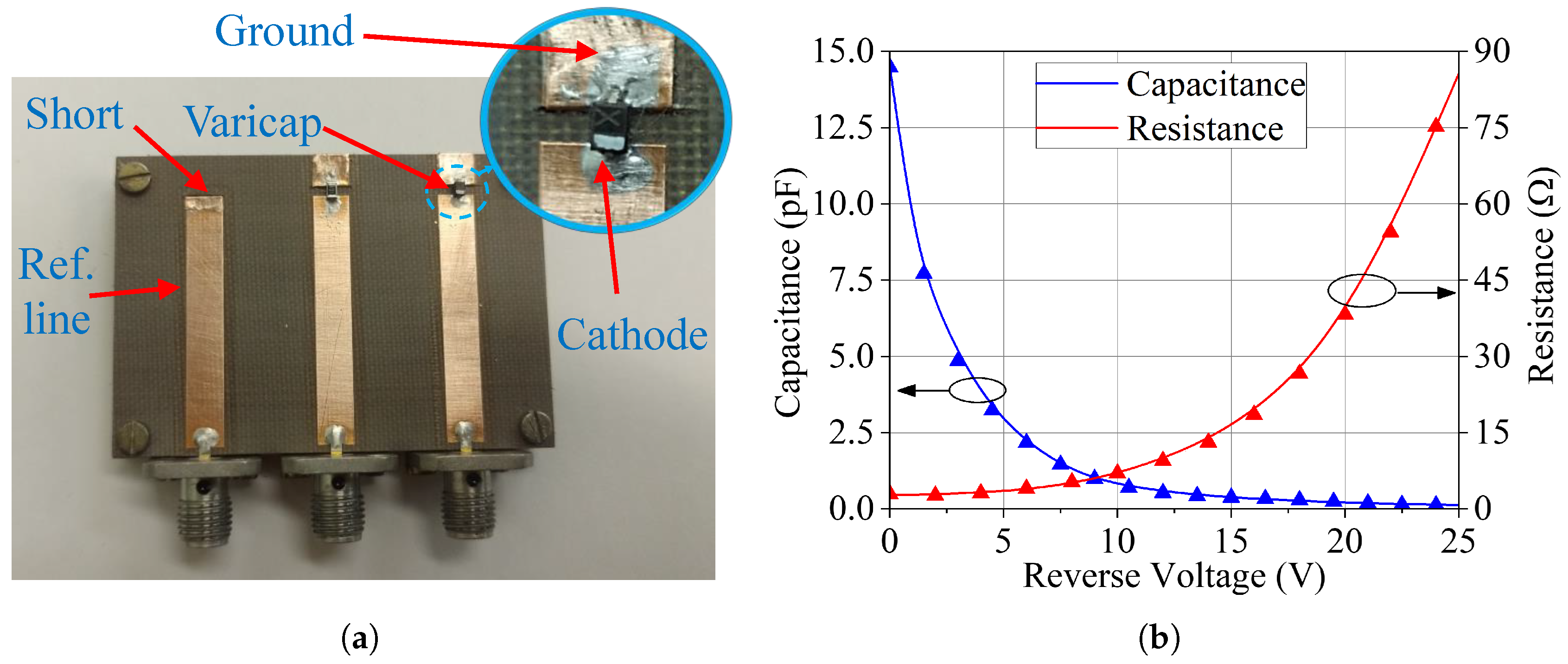 57]. The varactor diode, the solution adopted in this article, works as a continuously voltage-controlled low-loss capacitance, making it well-suited for antenna tuning [
