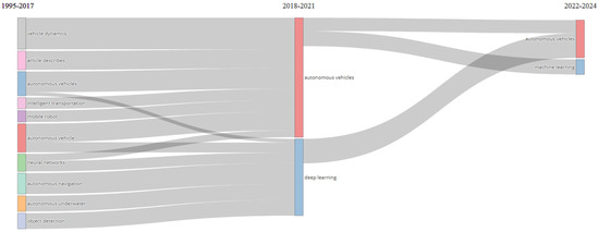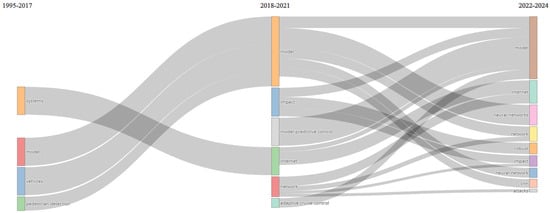 Figure 9 presents the evolution of Keywords Plus usage during the analyzed timespan. For a better understanding of the topic development, the data have been divided into three separate periods, 1995–2017, 2018–2021 and 2022–2024.