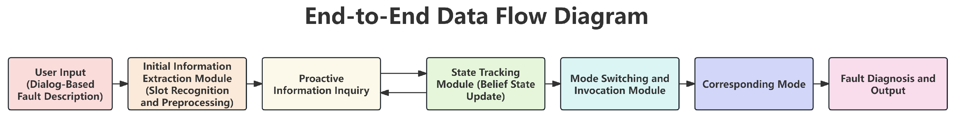 During the research process, we collaborated with a well-known German automotive company, utilizing their raw automotive fault diagnosis dialogue data to successfully construct a standardized dataset and related knowledge graph. To enhance the framework’s diagnostic capabilities, we designed and incorporated several key modules: the QASE model, fault detection and state-tracking module, initial information extraction module, dual information judgment module, mode-switching module, and hierarchical knowledge base structure. These modules enable the framework to not only correctly understand and categorize faults but also proactively query missing information and provide precise diagnoses.