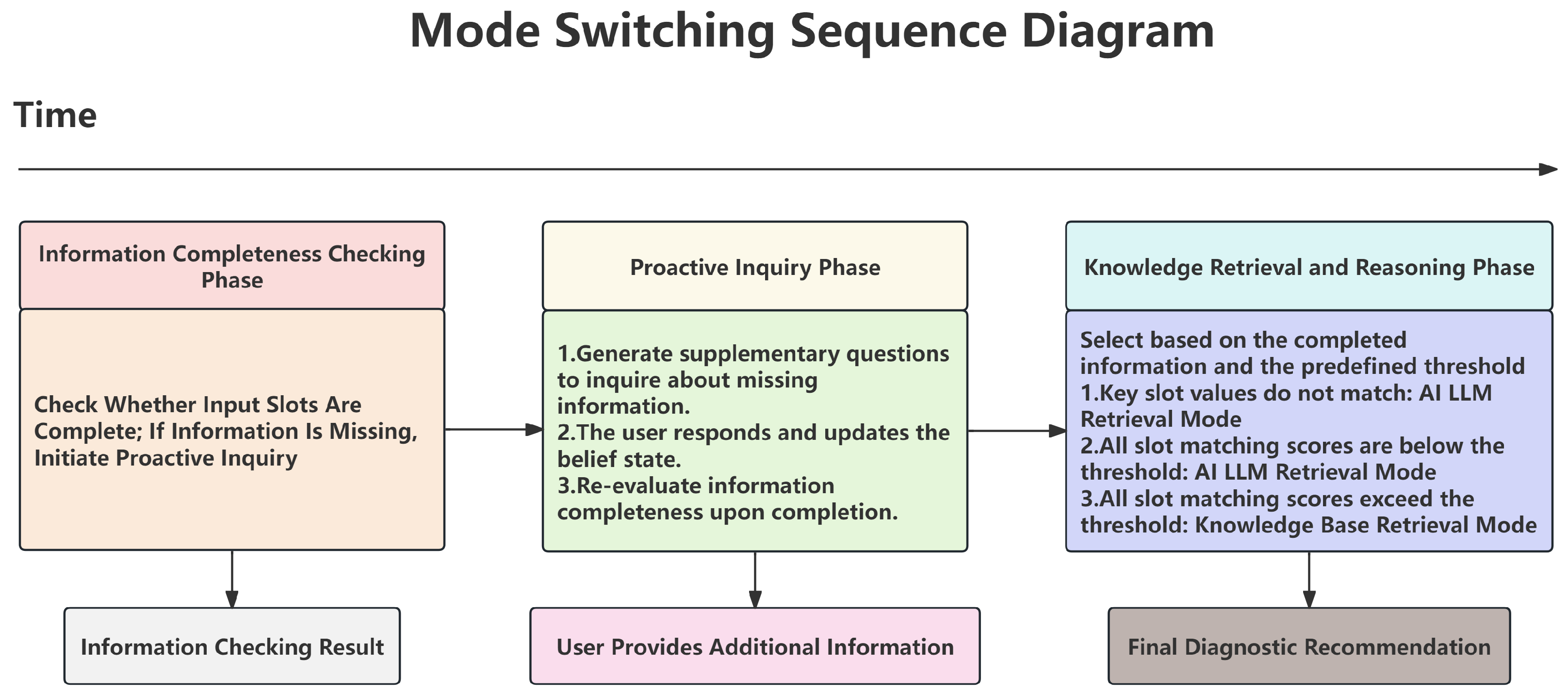 A dual-stage information judgment module and a mode Invocation and switching module are designed to enhance the model’s understanding of user-provided inputs and dynamically invoke appropriate diagnostic modes based on different scenarios.