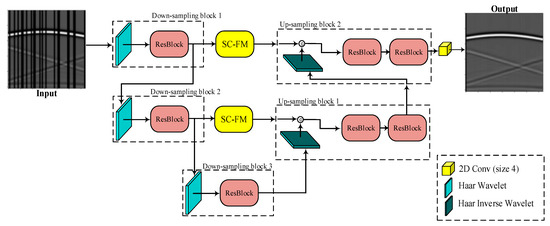 A notable characteristic of the Discrete Wavelet Transform (DWT) is its adaptive spatial-frequency resolution capability: it achieves superior spatial resolution in high-frequency regions, allowing the detection of subtle faults in seismic data, while providing better frequency resolution in low-frequency regions, which helps mitigate the impact of high-frequency noise. Leveraging this advantage, the skip connections in our designed neural network incorporate a specially developed module (SC-FM) that suppresses noise-dominated high-frequency subband components. This design prevents the amplification of noise during the interpolation process and, when combined with the lossless reconstruction capability of the inverse transform, enables accurate seismic data recovery.