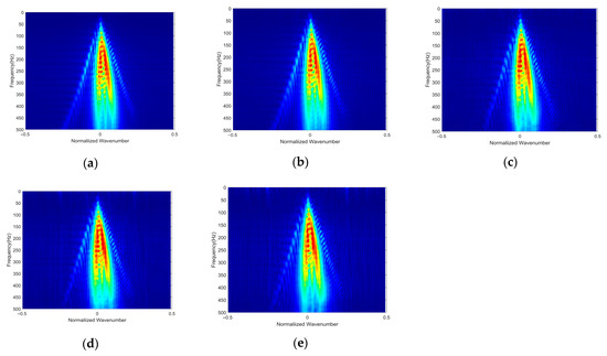The f-k spectrum of the experimental results: (a) Complete data; (b–e) represent the above four training modalities in turn.
