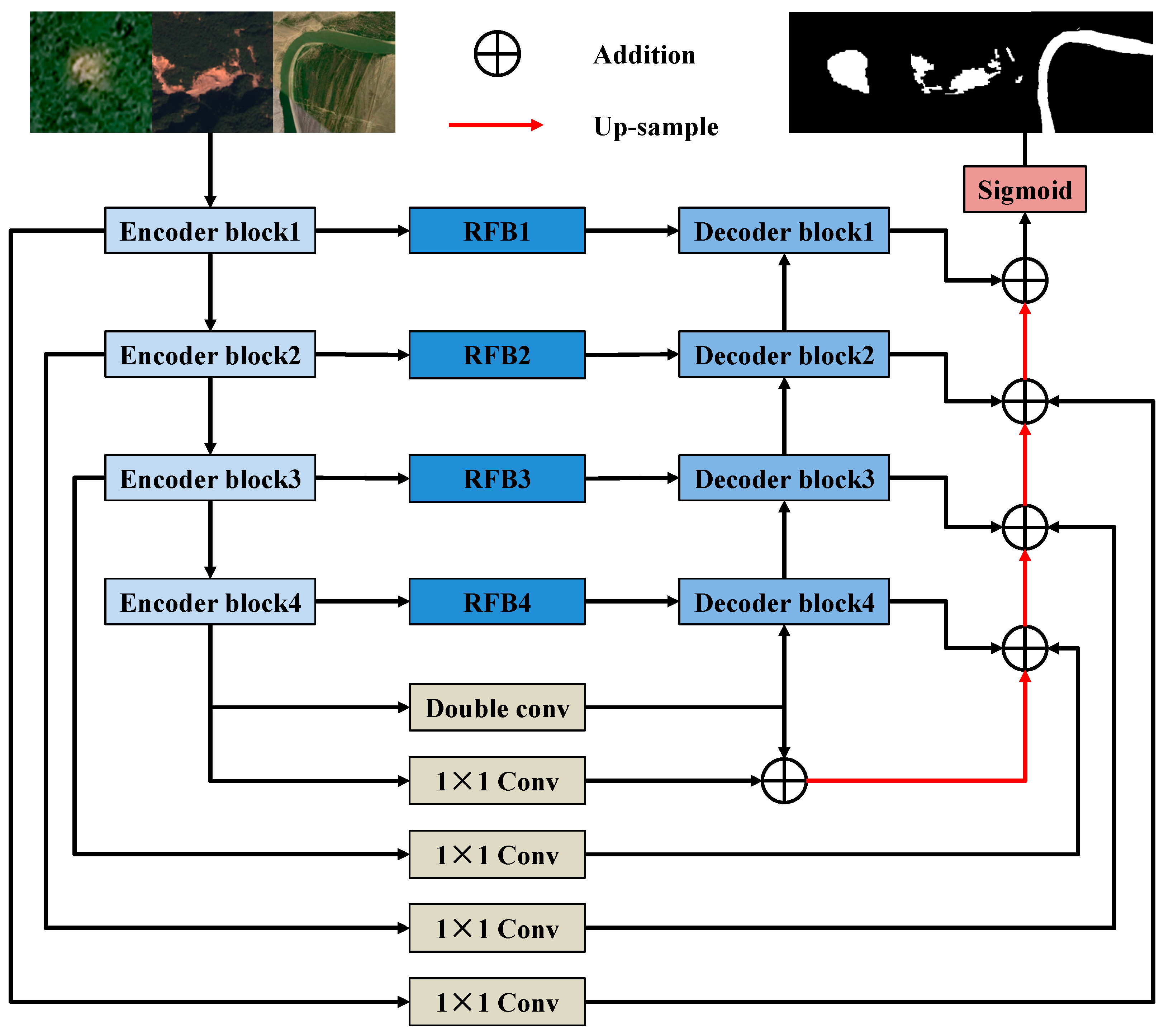 - Wang, K.; He, D.; Sun, Q.; Yi, L.; Yuan, X.; Wang, Y. A novel network for semantic segmentation of landslide areas in remote sensing images with multi-branch and multi-scale fusion. Appl. Soft Comput. 2024, 158, 111542. [Google Scholar] [CrossRef]