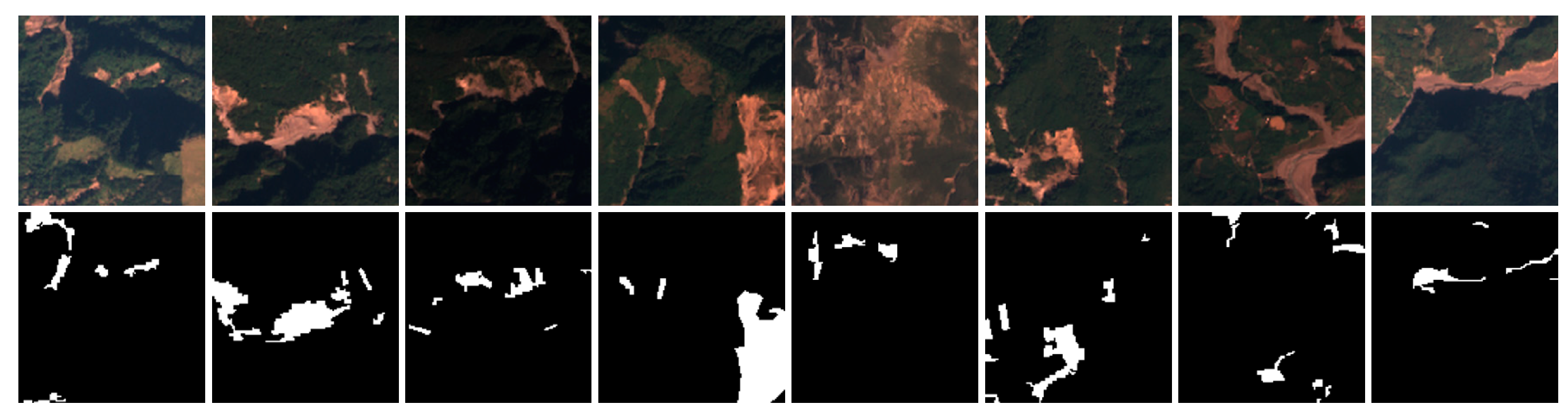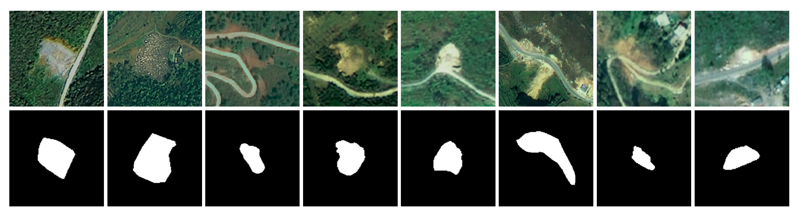 - Ghorbanzadeh, O.; Xu, Y.; Ghamisi, P.; Kopp, M.; Kreil, D. Landslide4sense: Reference benchmark data and deep learning models for landslide detection. IEEE Trans. Geosci. Remote Sens. 2022, 60, 5633017. [Google Scholar] [CrossRef]