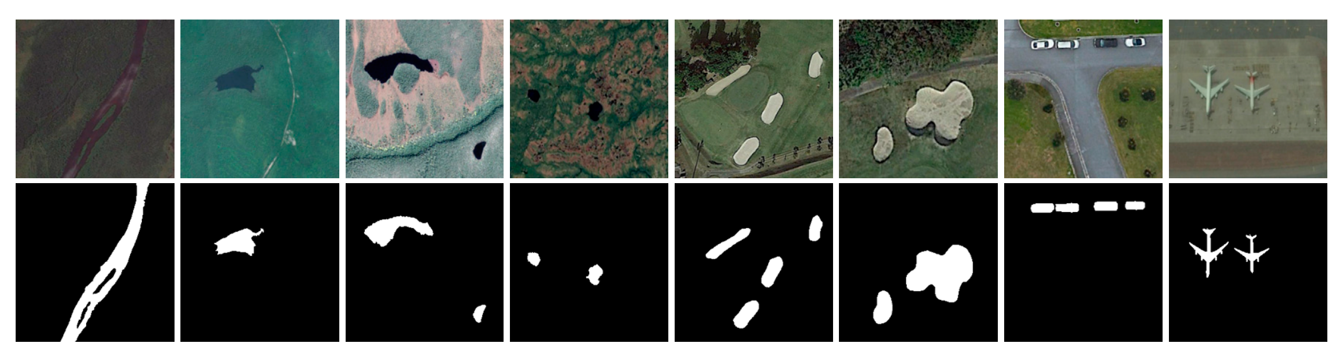 - Li, X.; Xu, F.; Liu, F.; Tong, Y.; Lyu, X.; Zhou, J. Semantic segmentation of remote sensing images by interactive representation refinement and geometric prior-guided inference. IEEE Trans. Geosci. Remote Sens. 2023, 62, 5400318. [Google Scholar] [CrossRef]