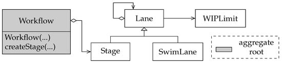 An ESA’s design is influenced by patterns including Domain Events, Aggregates, and Event Sourcing. Therefore, it must address the individual problems these three patterns set out to solve. This section presents a pattern-based design for ESAs, drawing on previous results from the existing literature [26,27,28,29]. To make the presentation concise and easy to understand, we will use an example to illustrate the design as shown in Figure 1.