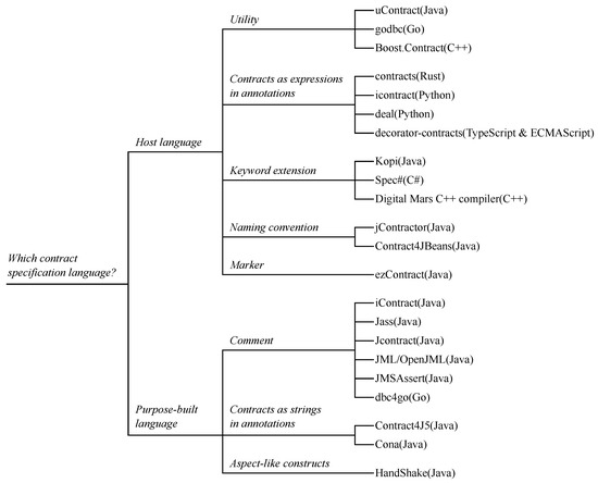 - Chen, C.T.; Cheng, Y.C.; Hsieh, C.Y. Contract Specification in Java: Classification, Characterization, and a New Marker Method. IEICE Trans. Inf. Syst. 2008, E91.D, 2685–2692. [Google Scholar] [CrossRef][Green Version]
