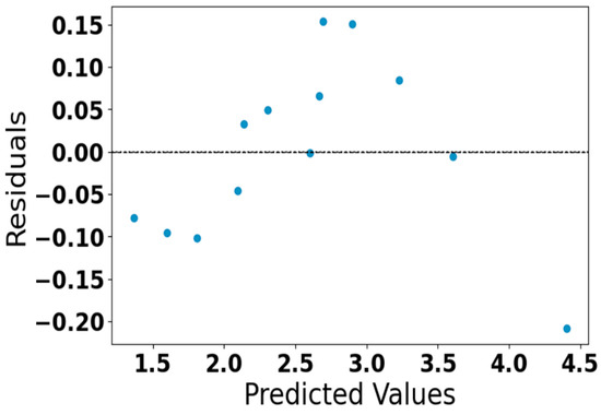 Figure 7 represents the residual plot of the predicted acetone concentration generated by our neural network model. The residuals are randomly scattered around zero without distinct patterns, which means the model predicts perform well without systematic bias. All residuals fall within a small range (approximately ±0.15), indicating a high level of prediction accuracy and confirming the reliability of the developed model.