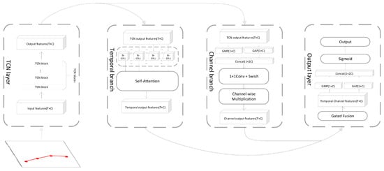 - The model innovatively adopts a two-branch attention mechanism to dynamically learn the most important information dimensions in the trajectory data. The channel attention branch evaluates the importance of different kinematic features, while the temporal attention branch focuses on locating the key time nodes that determine the authenticity of the trajectory.
