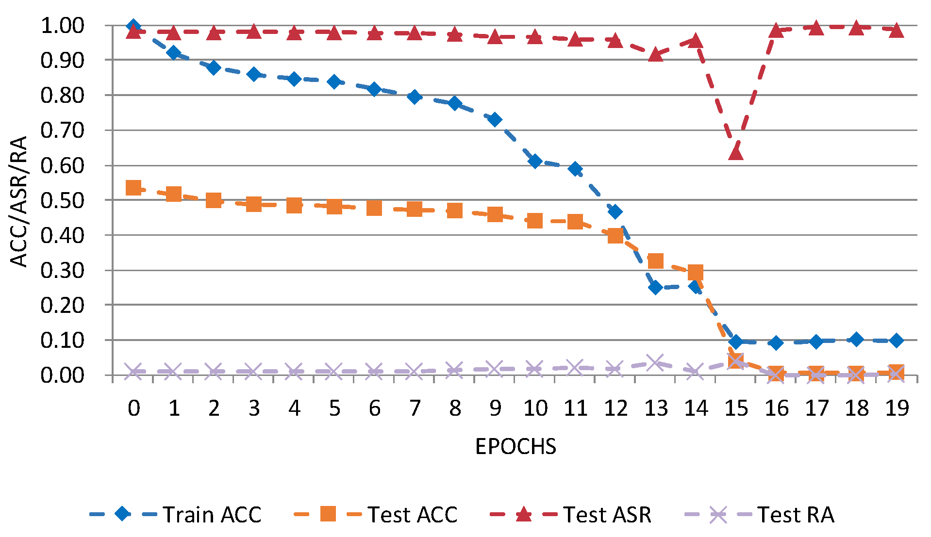 - Gu, T.; Liu, K.; Dolan-Gavitt, B.; Garg, S. Badnets: Evaluating backdooring attacks on deep neural networks. IEEE Access 2019, 7, 47230–47244. [Google Scholar] [CrossRef]