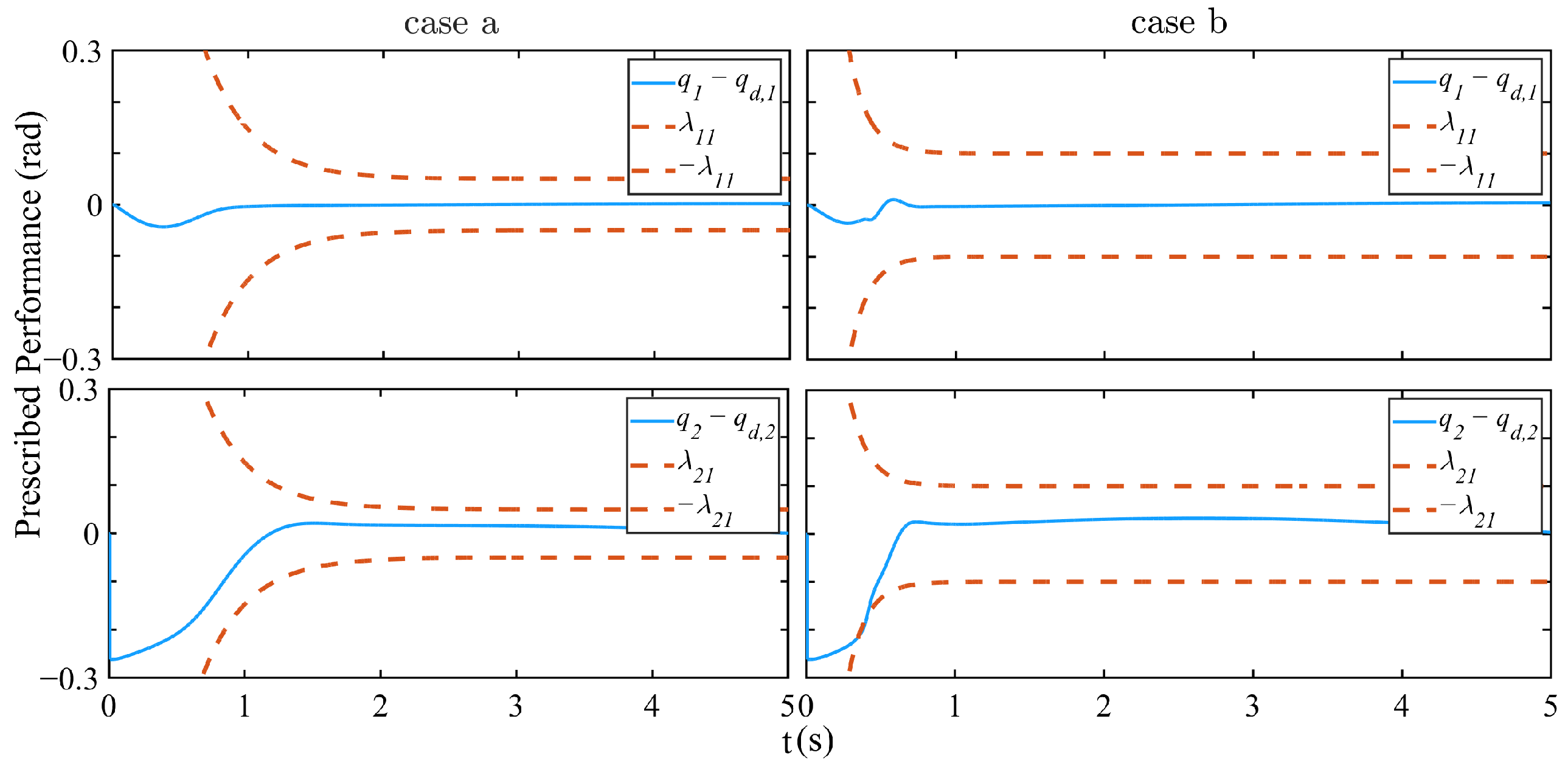 - Bechlioulis, C.P.; Rovithakis, G.A. Robust adaptive control of feedback linearizable mimo nonlinear systems with prescribed performance. IEEE Trans. Autom. Control 2008, 53, 2090–2099. [Google Scholar] [CrossRef]